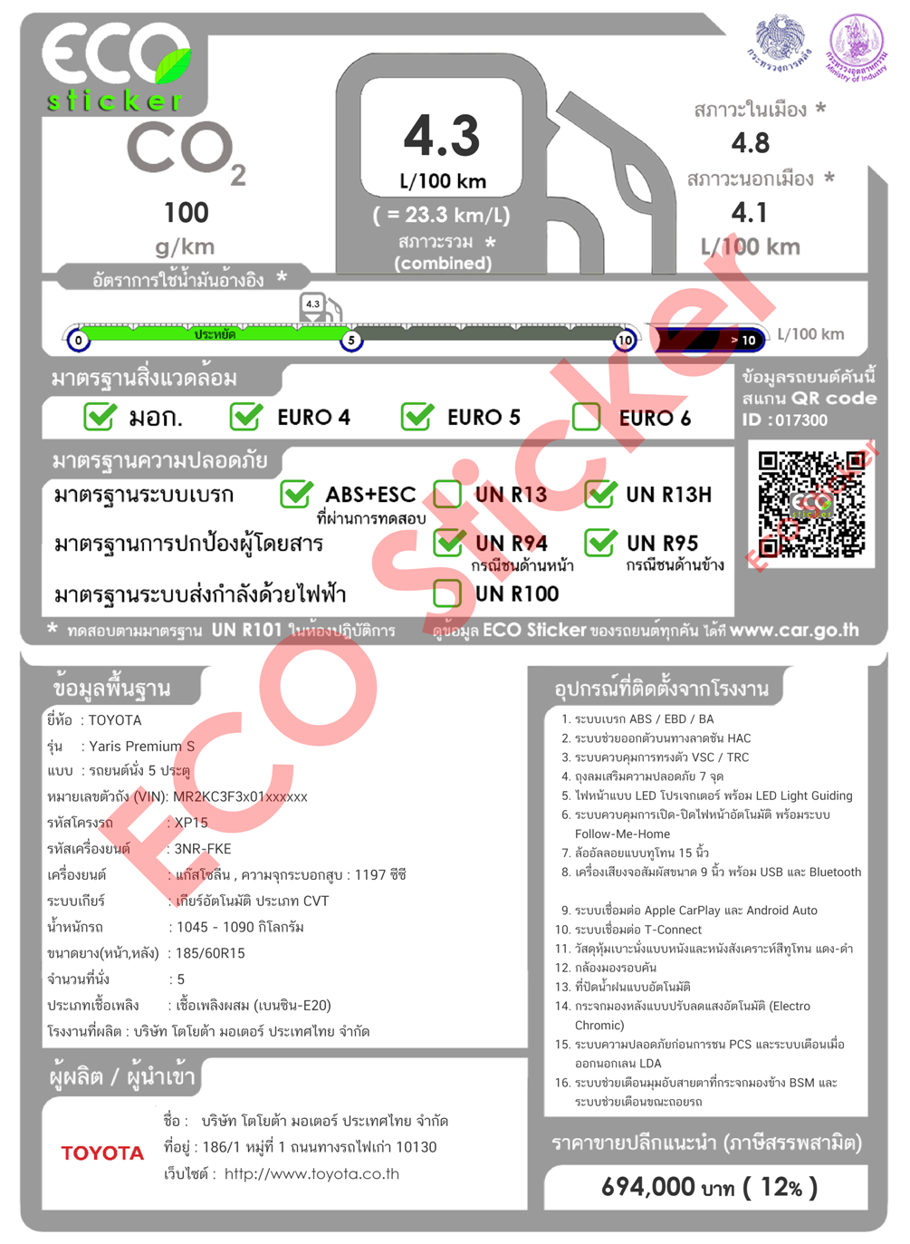 รุ่น PREMIUM S ราคา 694,000 บาท