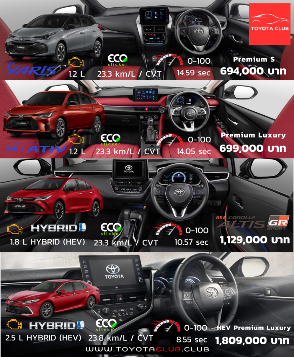 Toyota Altis เครื่องยนต์ 1.6 และ 1.8L Hybrid อัตราเร่ง 0-100 กิโลเมตร 10.57 วินาที ประหยัดน้ำมันสูงสุดถึง 23.3 กิโลเมตร/ลิตร