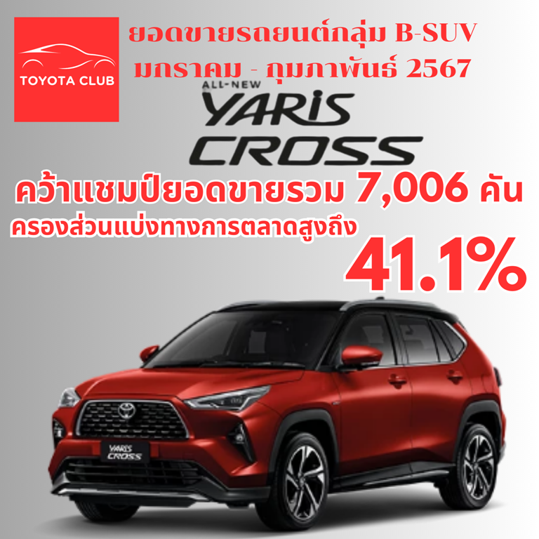 ยอดขายรถยนต์กลุ่ม B-SUV มกราคม ถึง กุมภาพันธ์ 2567