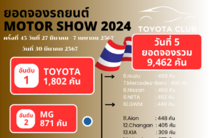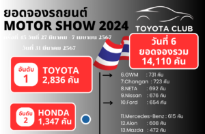 ยอดจองรถยนต์ Motor Show 2024 รวม 7 วัน 19,157 คัน