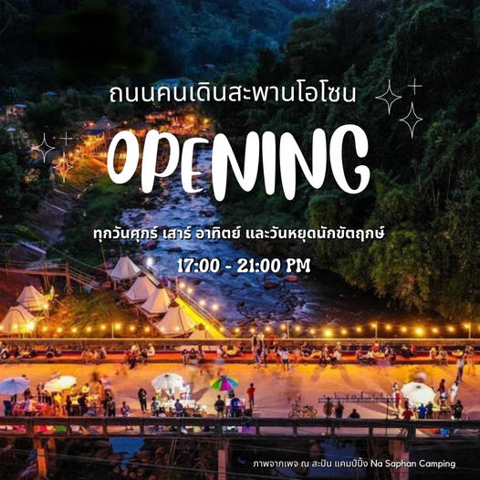 ถนนคนเดิน ทุกๆ วันศุกร์-เสาร์-อาทิตย์ และวันหยุดนักขัตฤกษ์ เปิดเวลา 17.00-21.00 น พิกัด บริเวณสะพานโอโซน ห่างจากที่พักไม่ไกล เดินทางประมาณ 15 นาที พบกับสินค้าพื้นเมือง อาหาร เครื่องดื่ม ได้ มาร่วมอุดหนุนและช่วยกันกระจายรายได้สู่ชุมชนและชาวบ้านสะปัน