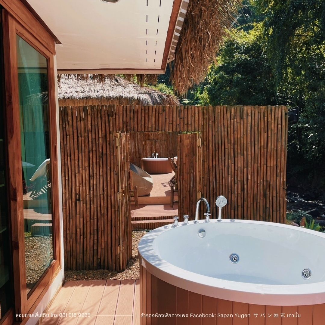 ที่พักคืนนี้จ้า Sapan Yugen サ パ ン 幽 玄 ที่พักใหม่พึ่งเปิด 8 ต.ต.2023ที่ผ่านมา ห้องสะอาด เป็นส่วนตัว มีห้องพักแค่3หลัง มีหมูกะทะให้ตอนเย็น มีอาหารเช้าให้ มีกาแฟให้ดริป เมล็ดเป็นของหมู่บ้านห้วยโทนที่อยู่ใกล้ๆที่พัก มีอ่างแช่น้ำในวิวข้างละธาร พนักงานบริการดี เป็นกันเอง