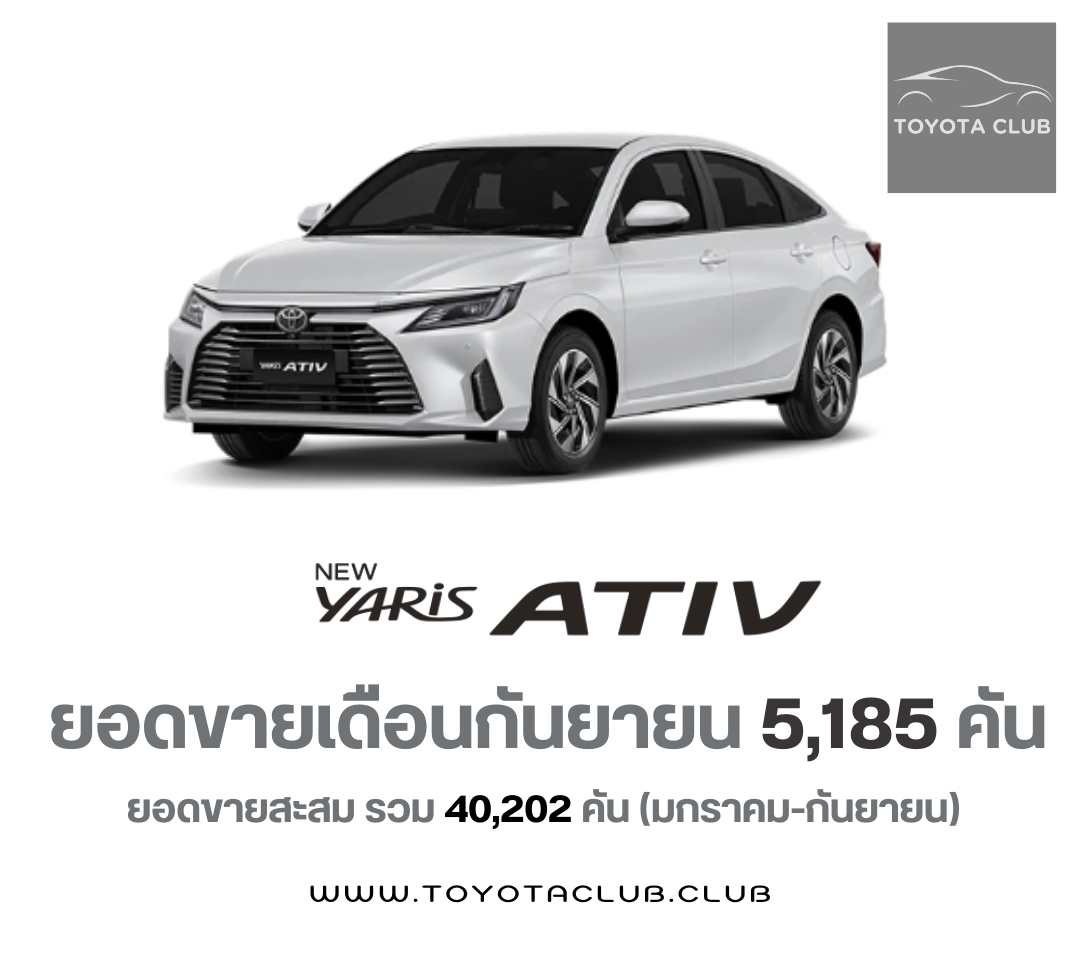 ยอดขายรถยนต์กลุ่ม ECO/B-Segment Sedan เดือนกันยายน อันดับ 1 Toyota Yaris ATIV จำนวน 5,185 คัน ยอดขายสะสมตั้งแต่เดือน มกราคม-กันยายน 2025 รวม 40,202 คัน