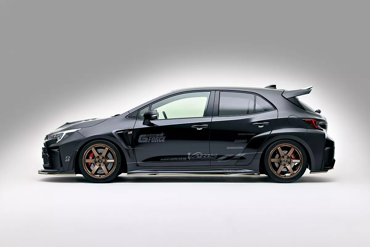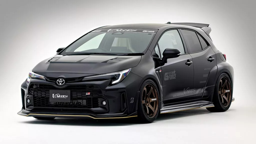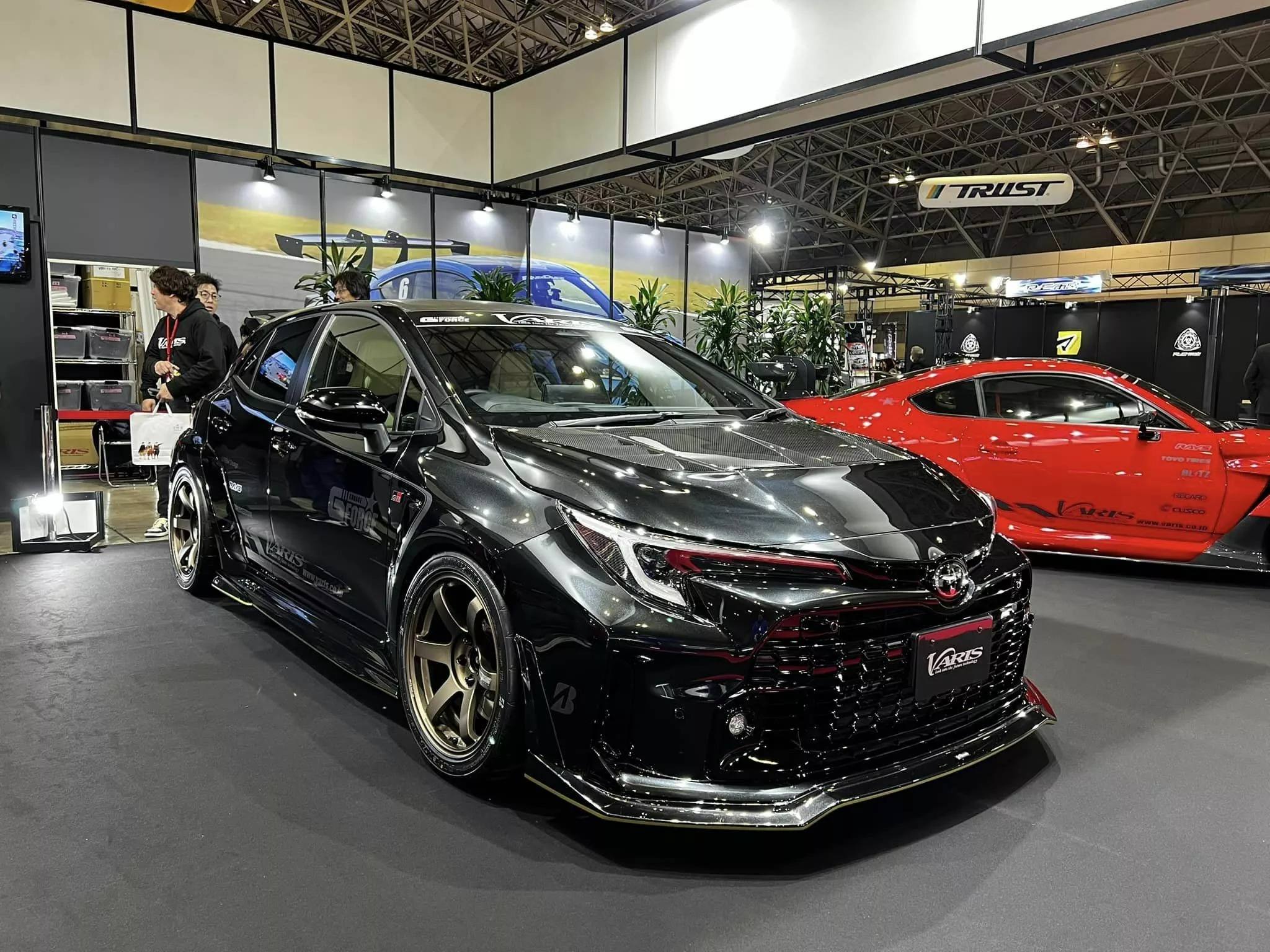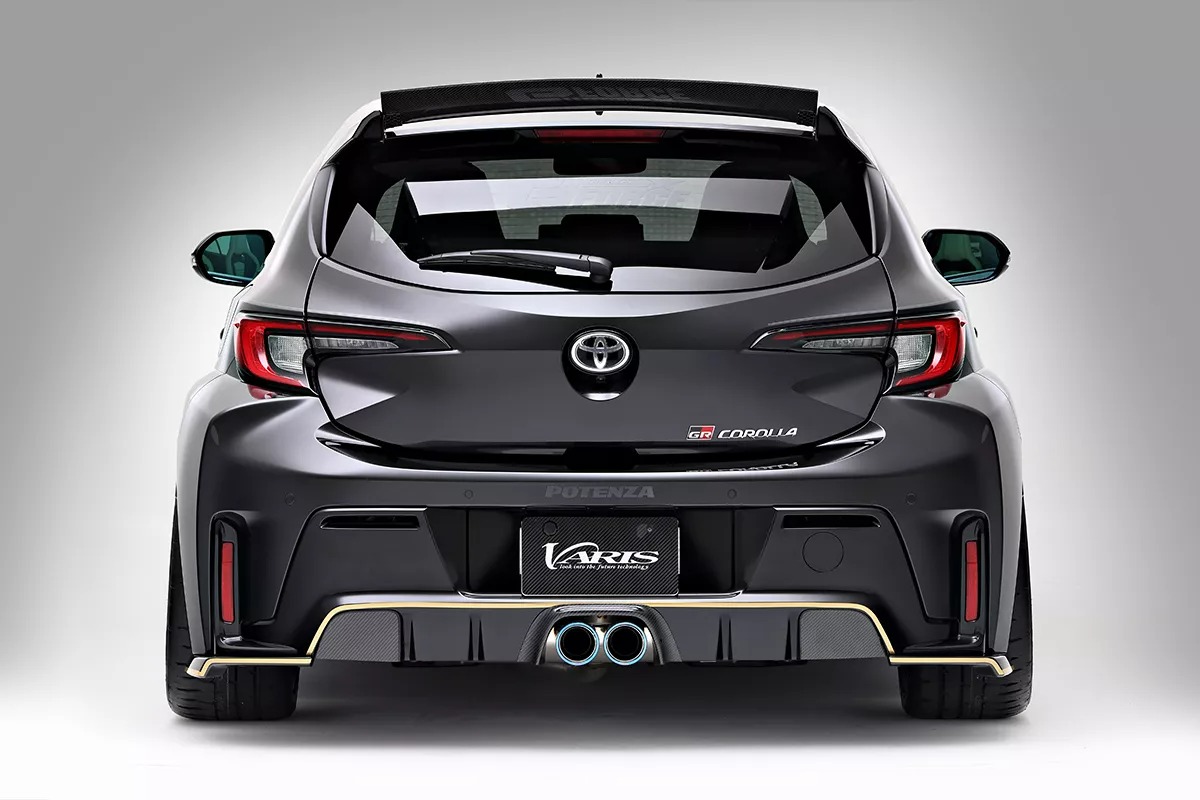 Varis ชุดแต่งรอบคัน Toyota GR Corolla ด้านหน้า  Varis ได้พัฒนา คาร์บอนไฟเบอร์สำหรับ GR Corolla  แม้ว่าจะแพง แต่ก็ช่วยให้รถดูดุดันขึ้น ชุดครีบ/ครีบด้านหน้าที่กันชนหน้ามีจำหน่ายซึ่งรับประกันว่าจะช่วยลดแรงต้านอากาศและเพิ่มแรงกด